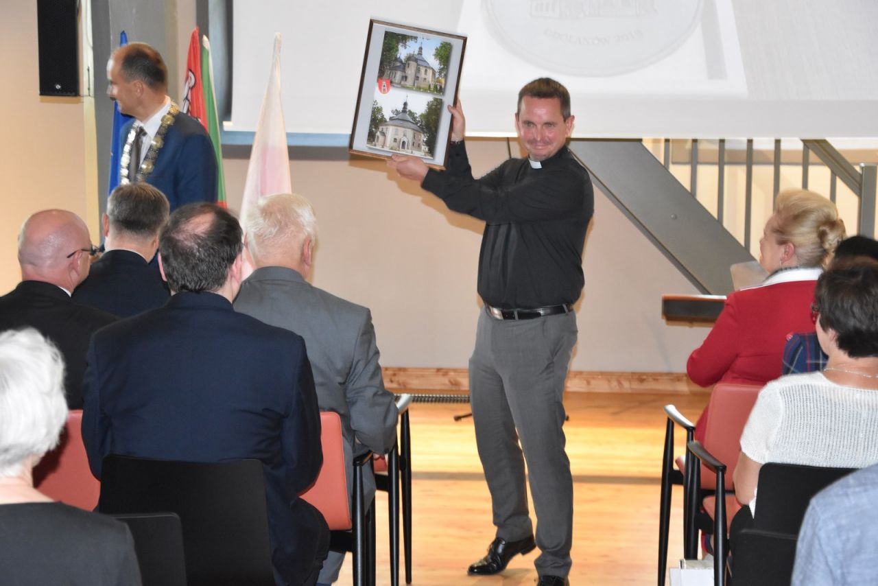 Kulminacyjnym punktem środowej uroczystości, było wręczenie ręcznie wykonanych, pięknych pamiątek z wizerunkiem Kościoła dla zaproszonych gości, oraz podziękowań dla wykonawców i wszystkich inspektorów, którzy walnie przyczynili się do zmodernizowania naszego pięknego obiektu.