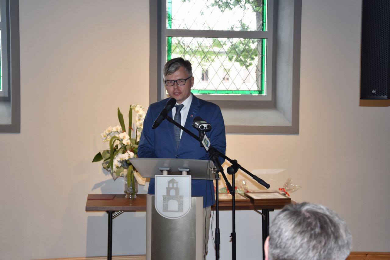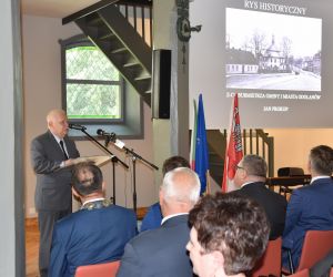 Bardzo interesującym punktem uroczystości było przedstawienie historii kościoła przez Wiceburmistrza Jana Prokopa, który obrazowo i wyczerpująco przedstawił dzieje odolanowskiej świątyni. Po wysłuchaniu hejnału Odolanowa i odczytaniu uchwały Rady Gminy i Miasta Odolanów przez przewodniczącego Janusza Szustkiewicza, nastąpiło oficjalne wręczenie plakietki za zasługi dla Ziemi Odolanowskiej Marszałkowi Województwa Wielkopolskiego Markowi Woźniakowi, który chwile później wygłosił przemówienie.