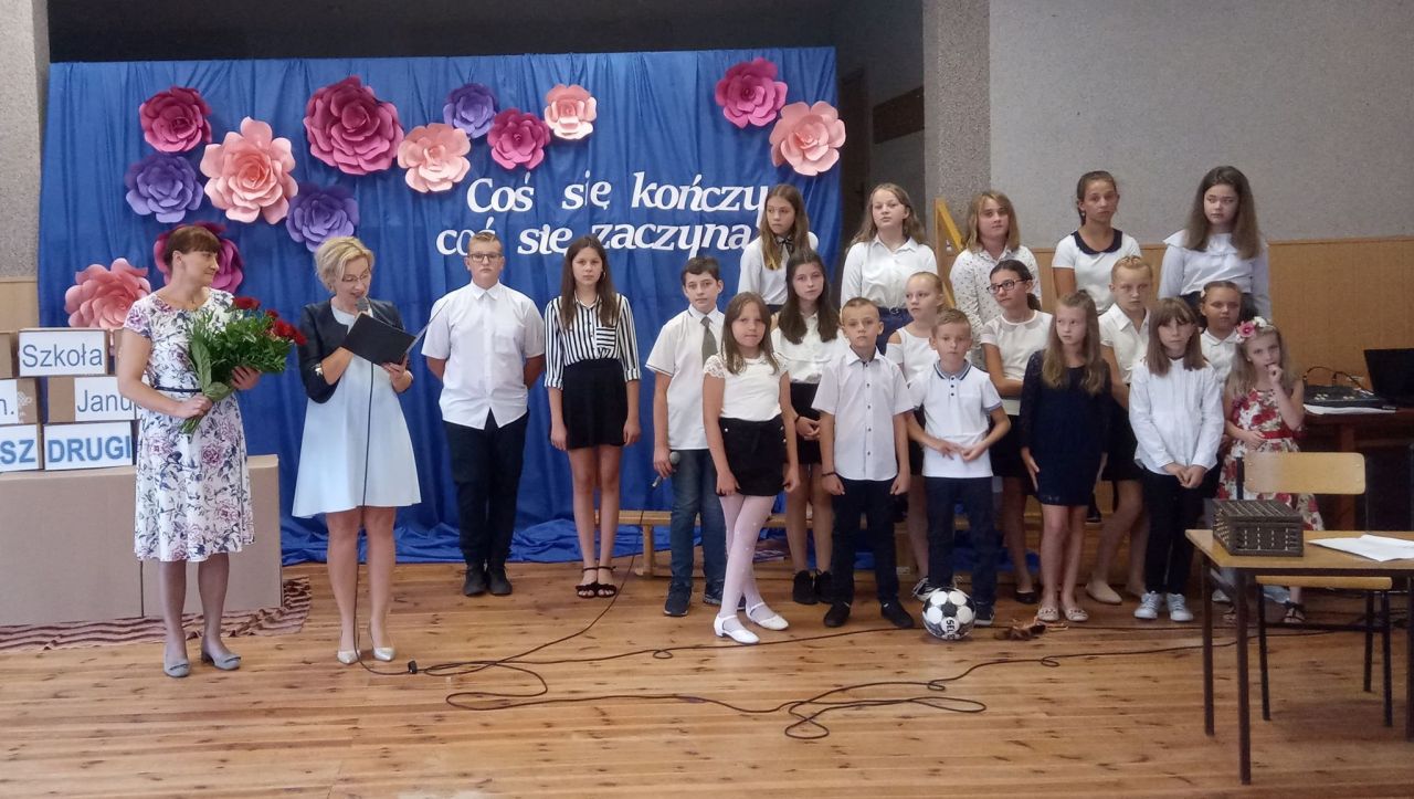 Inauguracja roku szkolnego 2019/2020 dla uczniów naszej szkoły była niecodzienna, pożegnaliśmy panią dyrektor Teresę Wojtczak, ale i powitaliśmy nowego dyrektora pana Krzysztofa Krawczyka, życząc mu wielu sukcesów, dążenia do celu oraz wytrwałości. Swoją obecnością zaszczycili nas zaproszeni goście: Burmistrz Gminy i Miasta Odolanów Marian Janicki, Przewodniczący Rady Gminy i Miasta Odolanów Janusz Szustkiewicz, sołtys wsi Huta Grzegorz Finke, sołtys wsi Nadstawki Irena Kubica, Dyrektor Centrum Usług Wspólnych Marcin Stryjak, przedstawiciel straży pożarnej i zespołu „Hucianie” Stanisław Goliński, przedstawiciele Rady Rodziców.