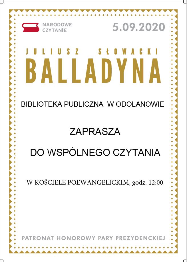 Zaproszenie na Czytanie Narodowe 2020autor: Biblioteka Publiczna GiM Odolanów, data: 2020-09-03« wstecz