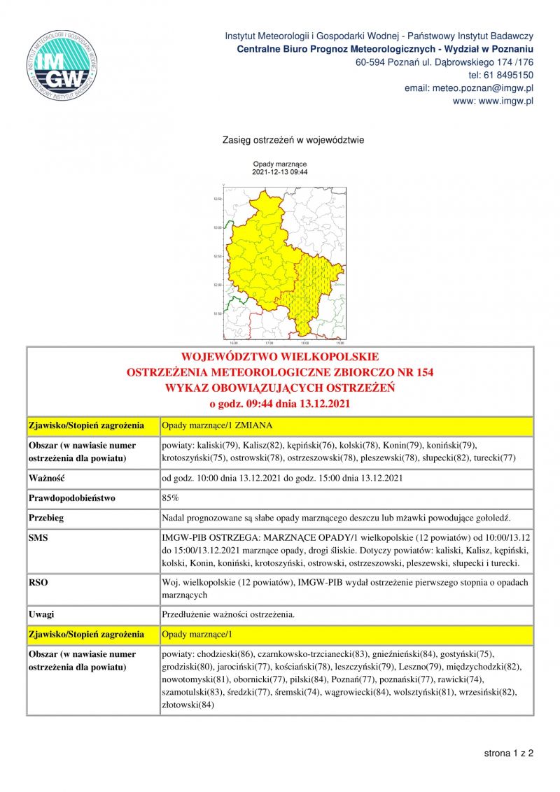 OSTRZEŻENIE: Prognozuje się marznące opady deszczu!