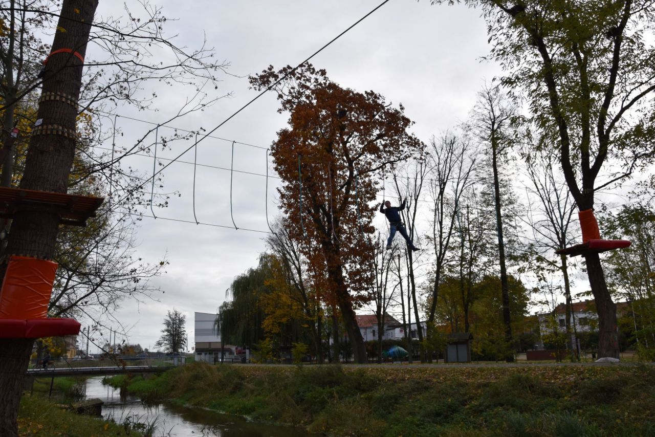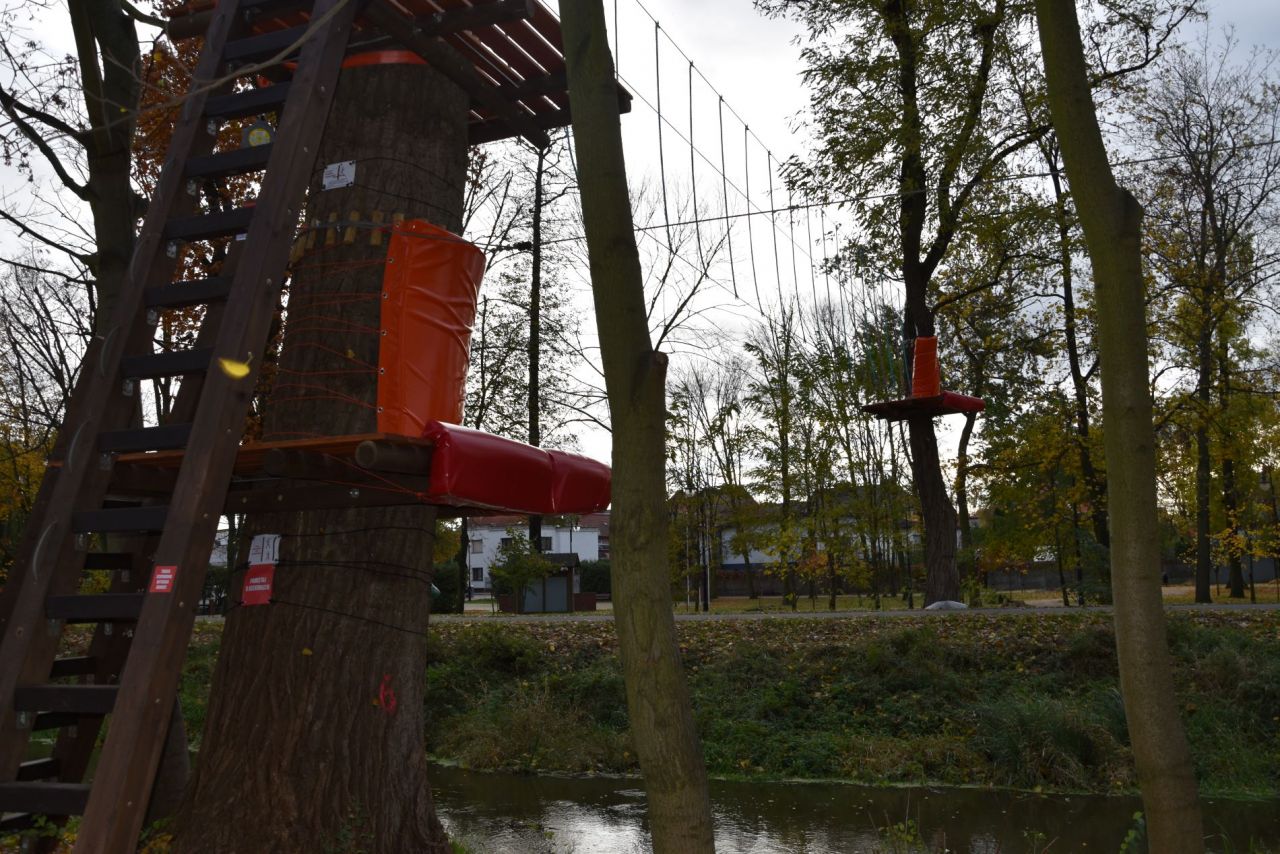 • Trasa niska – przeznaczona dla dzieci w ramach której  wybudowane na drzewach zostaną platformy pomiędzy którymi zostaną rozwieszone atrakcje stanowiące stopień trudności dostosowany od wieku. Długość trasy niskiej to ok. 58 m
