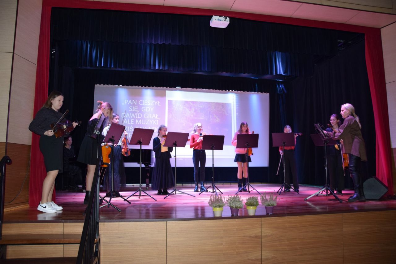 W poniedziałkowy wieczór 27 listopada w Sali Koncertowej Odolanowskiego Domu Kultury odbył się „Koncert Jesienny” którego organizatorem i wykonawcą byli uczniowie i pedagodzy Państwowej Szkoły Muzycznej w Odolanowie. Nad całością wydarzenia czuwała P. Agnieszka Wielebska, która przygotowała na tę szczególną okazję autorski scenariusz oraz czuwała nad przebiegiem wydarzenia. Na koncert złożyły się utwory patriotyczne, klasyczne, rozrywkowe, które były przeplatane poezją Wisławy Szymborskiej oraz Kamila Baczyńskiego recytowaną przez uczniów szkoły. W pierwszej części koncertu publiczność wysłuchała szkolnego chóru pod kierunkiem i do akompaniamentu Agnieszki Wielebskiej - chórzyści zaprezentowali się w patriotycznym repertuarze „Pierwsza Brygada”, „Piechota” oraz „Białe róże”. W dalszej części koncertu na scenie zaprezentowali się uczniowie klasy fortepianu P. mgr Anny Przewoźnej, Łukasza Kryjoma, Martyny Gąsiewskiej Galler (również akompaniatorki koncertu) skrzypiec Małgorzaty Kaczmarek i Arkadiusza Hylewskiego, saksofonu Macieja Sołtysiaka i trąbki Marcina Wieczorka. Sporą niespodziankę sprawił zespół skrzypcowy pod kierunkiem Małgorzaty Kaczmarek, który zaprezentował się w balladzie Halleluja Leonarda Cohena do akompaniamentu fortepianowego Agnieszki Wielebskiej. Na zakończenie koncertu publiczność wysłuchała dwóch utworów w wykonaniu pedagogów szkoły – Arkadiusza Hylewskiego – skrzypce do akompaniamentu Anny Przewoźnej. W wirtuozowskim wykonaniu publiczność wysłuchała pierwszej części „Jesieni” pochodzącej z „Czterech Pór Roku” A. Vivaldiego oraz nastalgicznego utworu Julessa Masseneta „Medytacji”. Koncert poprowadzili Julia Kawiatkowska, Antonina Kędziora oraz Antoni Grzegorowski.