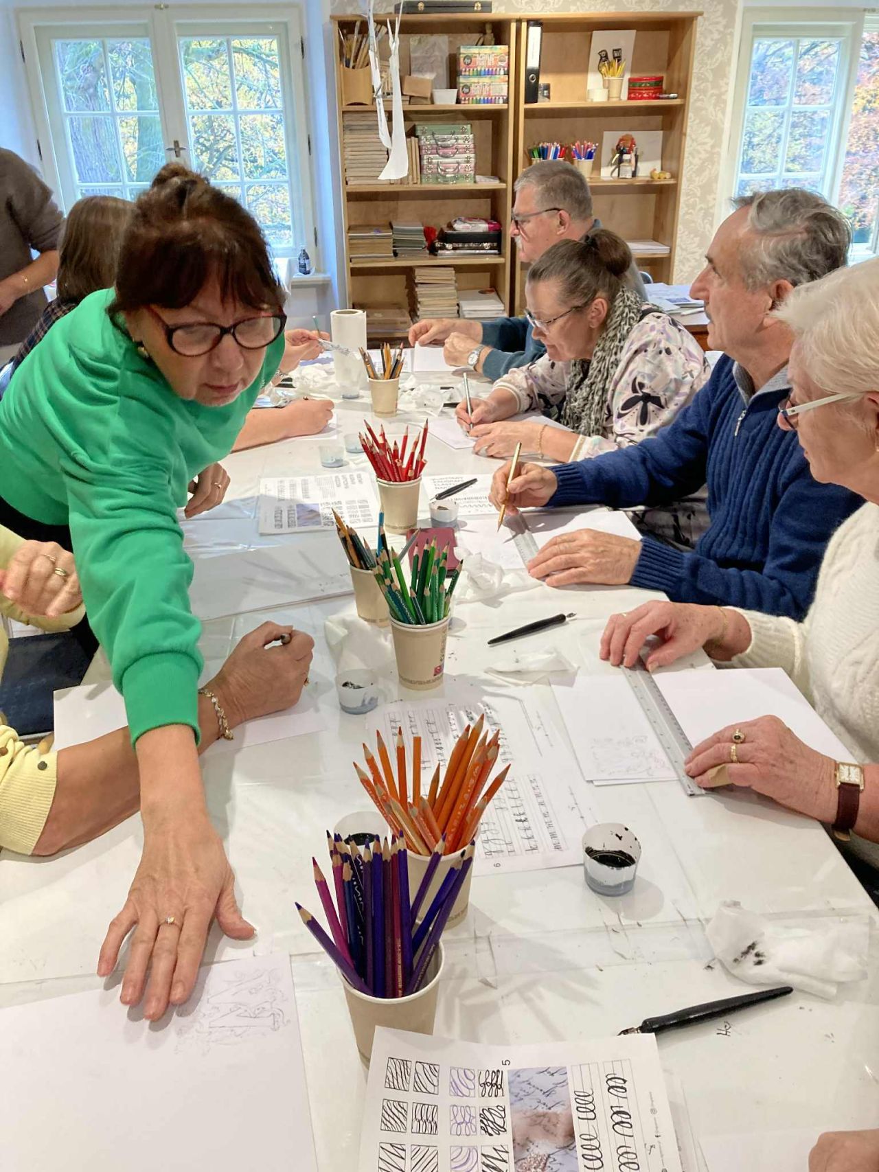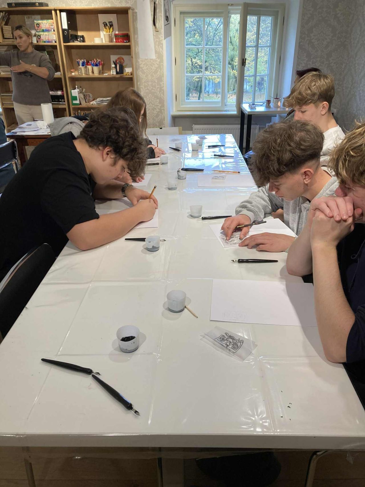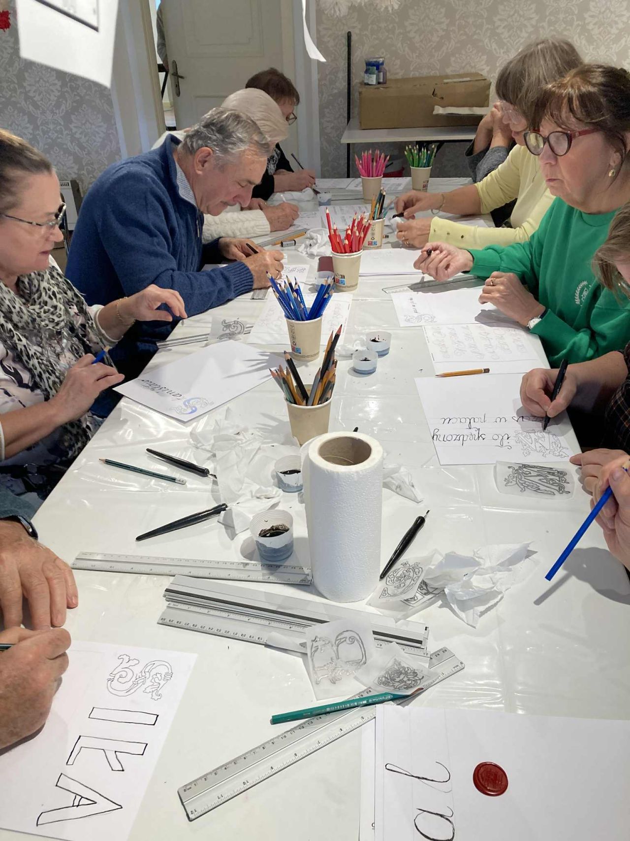 W dniu 30 października 2025 r. studenci odolanowskiego UTW oraz młodzież liceum wybrała się do Zespołu Pałacowo-Parkowego w Lewkowie. Tym razem podczas 4-godzinnej wycieczki realizowali warsztaty z kaligrafii, miniatur i lakowania, podczas których uczestnicy trenowali piękną pisownie, malowanie miniatur a na końcu mogli opieczętować lakiem swoją pracę. Drugą częścią była lekcja muzealna w parku "O czym szumią lewkowskie lipy", gdzie rozpoznawano drzewa i uczono się jak je mierzyć. Trzecim elementem tego dnia było zwiedzanie pałacu z przewodnikiem, w trakcie którego snuły się opowieści o rodzinie Lipskich, ich życiu codziennym oraz zaangażowaniu w życie społeczne i polityczne naszego regionu. Jedna z uczennic mogła także zagrać na fortepianie. W trakcie zajęć i zwiedzania studenci UTW i licealiści robili zdjęcia historyczne i przyrodnicze, które wezmą udział w konkursie fotograficznym. To kolejny dzień spędzony na międzypokoleniowej integracji i zdobywaniu wiedzy o Małej Ojczyźnie.