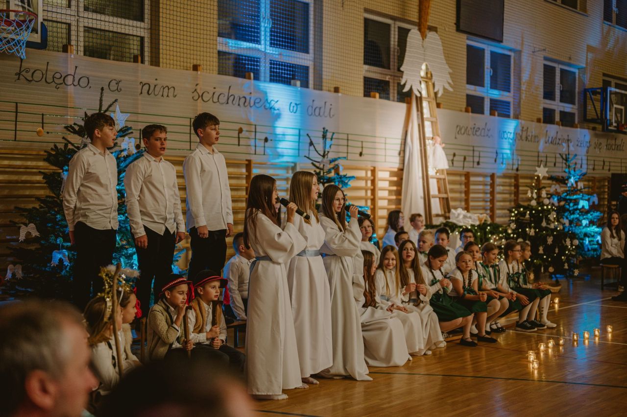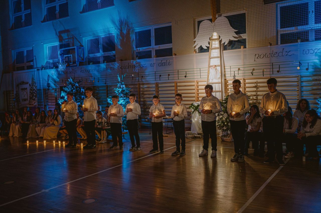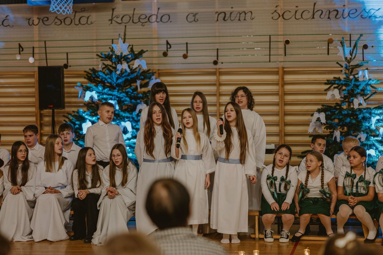 Uroczystość rozpoczął występ artystyczny przygotowany przez uczniów. Młodzi wykonawcy zaprezentowali tradycyjne kolędy i pastorałki, wprowadzając wszystkich w radosny nastrój zbliżających się Świąt Bożego Narodzenia. Wspólne kolędowanie wywołało wiele wzruszeń, a także stało się okazją do integracji oraz kultywowania świątecznych tradycji.