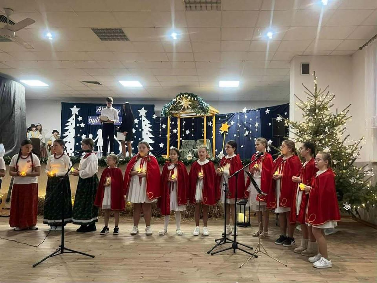 Wśród zaproszonych znaleźli się m.in. przedstawiciele władz samorządowych, dyrekcji szkoły, duchowieństwa, lokalnych organizacji oraz licznie zgromadzeni mieszkańcy. Występ artystyczny rozpoczęły przedszkolaki z grupy „Żabki”, które zatańczyły „Pastorałkę prosto z nieba”.